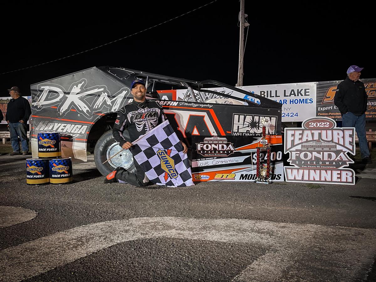 “It feels like about ten years,� Constantino said in F.X. Caprara Victory Lane about the time since his last win at Fonda which was on 5/4/2019. “I needed this real bad. I’m getting too fat to do roof dances, but I have to thank Laudy (car owner Laudy Hoyenga) for hanging with us, we tried some stuff and really struggled here last year but we have our shit together now.�