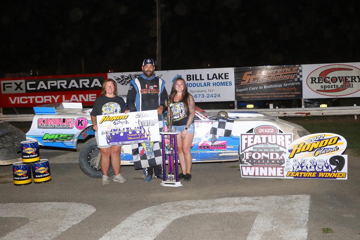 Fonda, NY – On Saturday evening at the “Track of Champions� Fonda Speedway, the 29-lap Algonkin Motel Pro Stock feature was the 17th edition of the Hondo Classic in memory of the late Hondo Carpenter featuring a total purse of $3,669.97 in bonuses and lap sponsorships on top of the regular track purse! A complete list of bonuses and lap sponsorships are listed at the end of this release.
