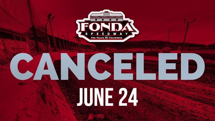 Due to heavy overnight rain and predicted rainfall this afternoon, racing at Fonda Speedway has been canceled for tonight. Two days of racing are set for next weekend at the Track of Champions on Saturday, July 1 and Sunday, July 2.