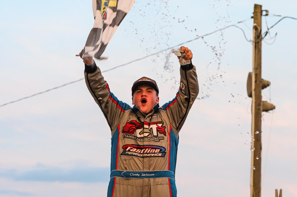 Hill continued to lead with sixth place starter Corky Warner the new second place car on lap two after getting by Mason Gray for the spot. Warner took the lead on the inside of turn two on lap nine and led the remaining laps for his first win of the 2025 season and the second of his career in the division in the Carols Transportation #797 followed in the top five by Gray, Bobby Rhinehardt, Hill, and Josh Persse.