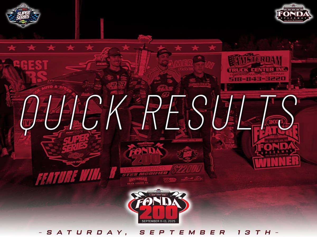 FONDA SPEEDWAY QUICK RESULTS 9/13/2025 FONDA 200 WEEKEND DAY #3
